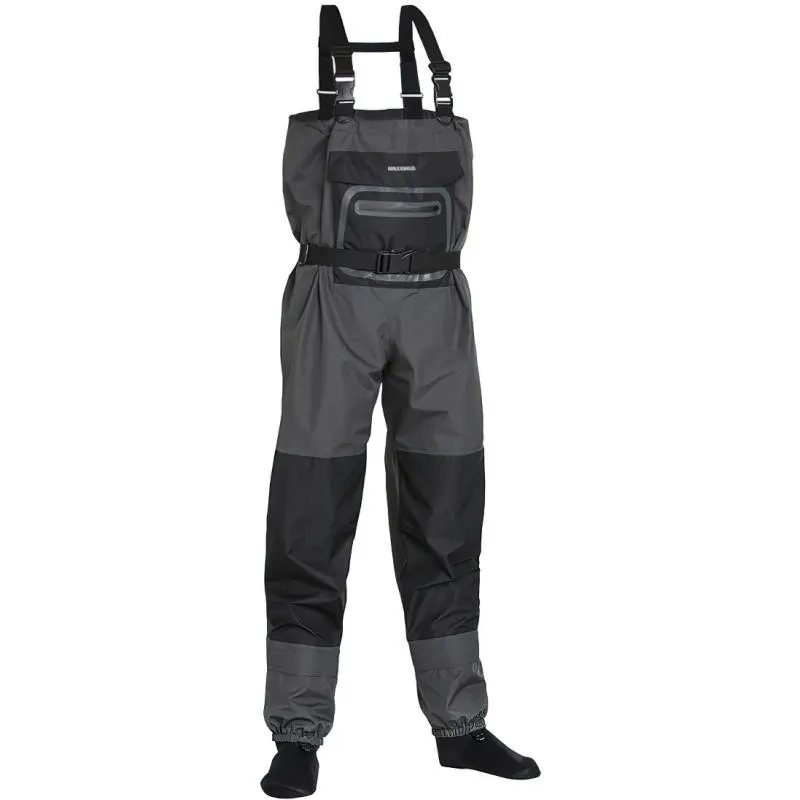 Robust breathable waders. 3-layer construction Sealed seams. Water column: 15.000 mm Breathability: 2.000 g/m2/24hrs 2 chest pockets 2 D-rings Elastic wading belt. Adjustable elastic straps