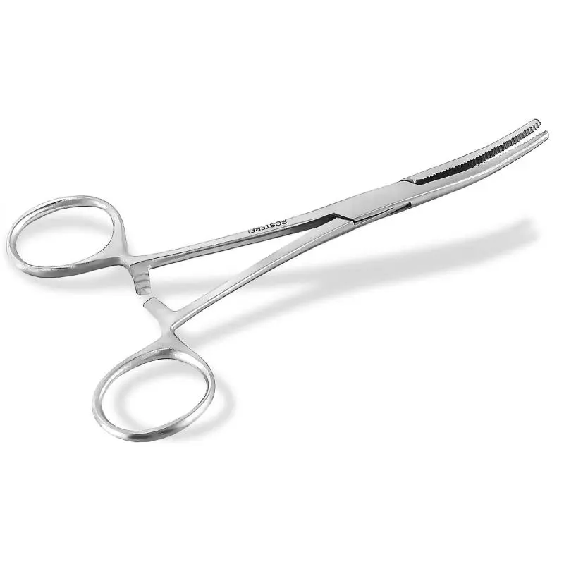 Stainless steel artery clamps (silver colored) for durability.